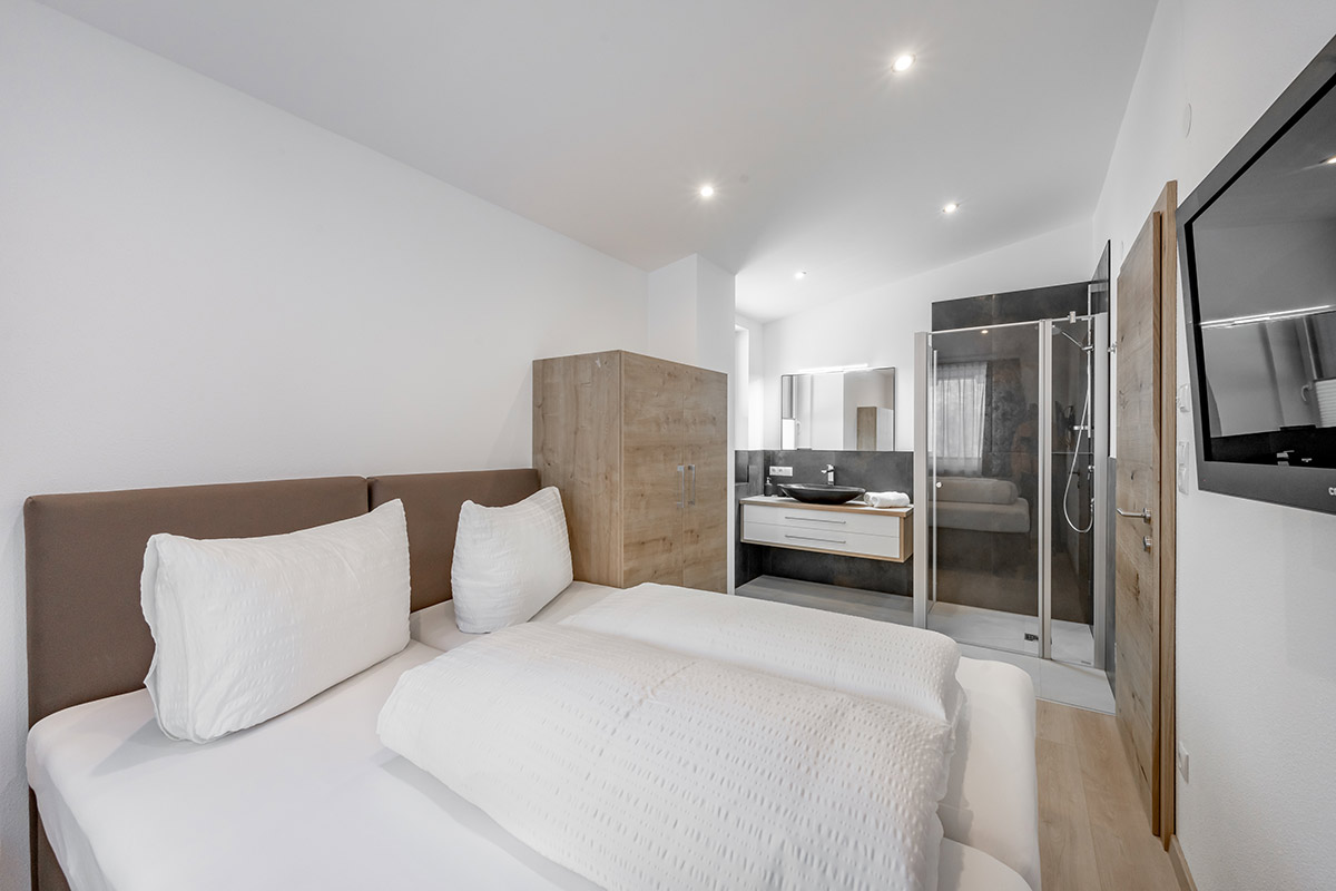 - 1 Schlafzimmer mit Doppelbett, Flat-TV und Zimmersafe